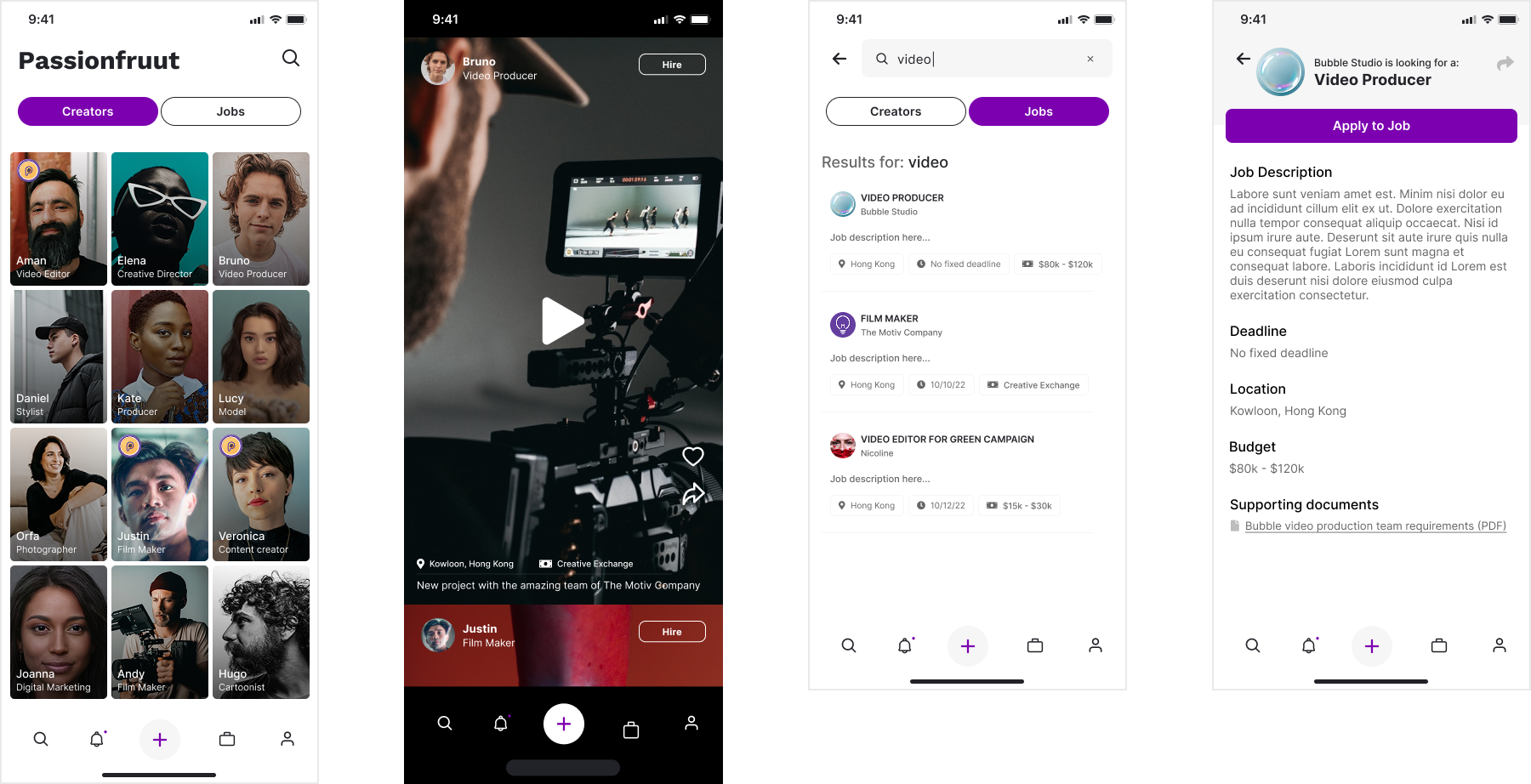 The design of Passionfruut established a clear and compelling vision for video-first creative networking. The product provides a foundation that allows creatives to express themselves authentically, discover collaborators intuitively, and connect in ways that feel meaningful and human.